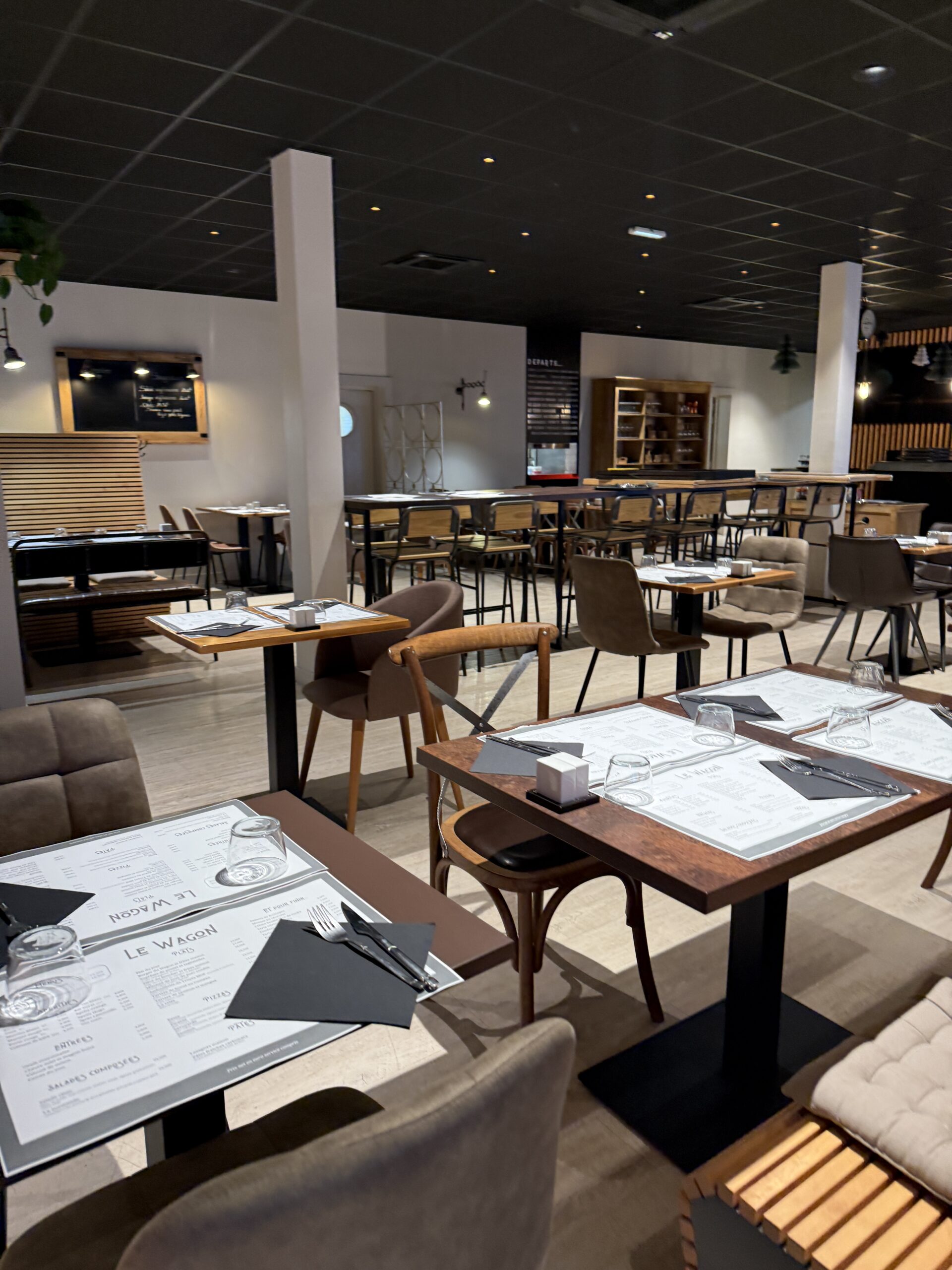 Situé à proximité immédiate de la rocade et des axes autoroutiers, Le Wagon est une brasserie conviviale pensée pour les déjeuners efficaces sans compromis sur le goût.